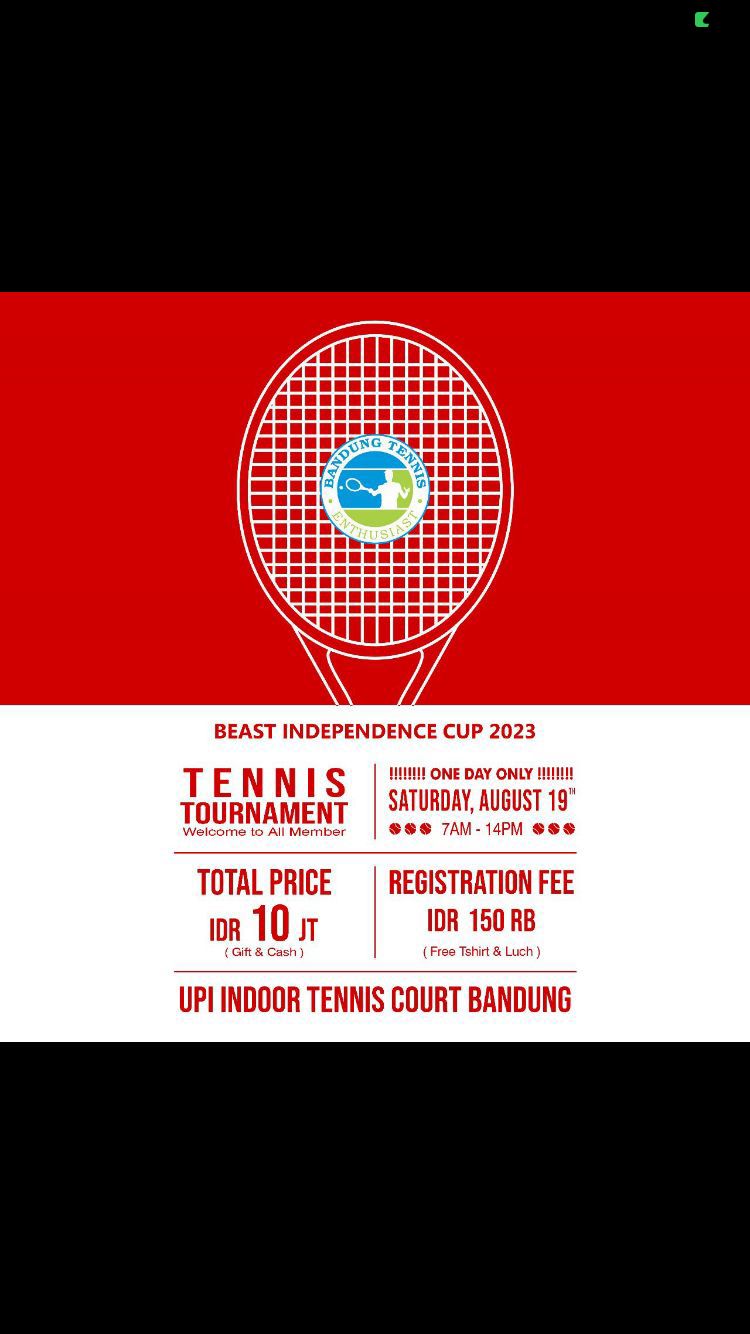 Bandung Tennis Enthusiast menggelar acara Tennis Tournament Beast Independence Cup 2023 di Lapangan Tennis Indoor UPI pada Sabtu, 19/08/2023.