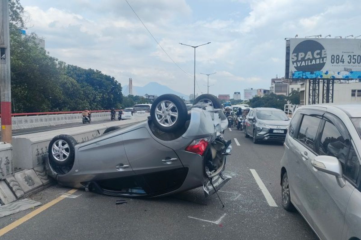 Kecelakaan lalu lintas (lakalantas) antara dua unit kendaraan roda empat jalan layang Pasupati, Kota Bandung pada Sabtu (22/3/2025) siang.
